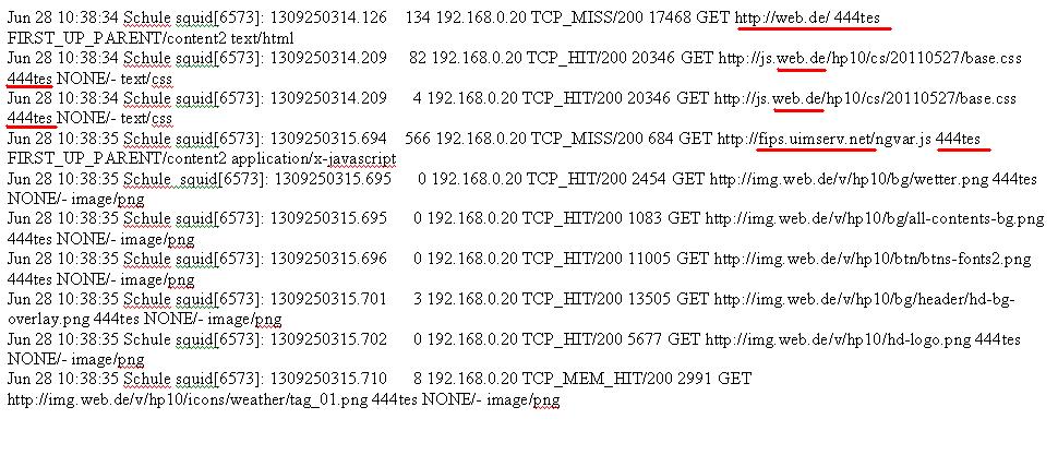 Ich habe hier den Anmeldenamen und die besuchten Webseiten im Proxy- Log !