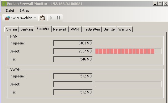 nach dem ich jetzt die Endian UTM im Einsatz habe ist der Speicherbedarf heute Morgen auf 1250 MB runtergegangen . . . . .