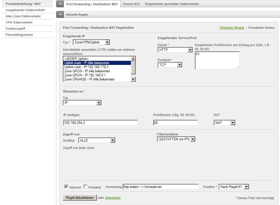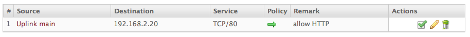 Any Uplink – HTTP – Port 80, Insert von IP 192.168.2.20 , auf Orange auf Port 80.