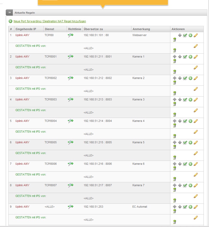 Ich würde Pro Kamera eine Regel hinzufügen.