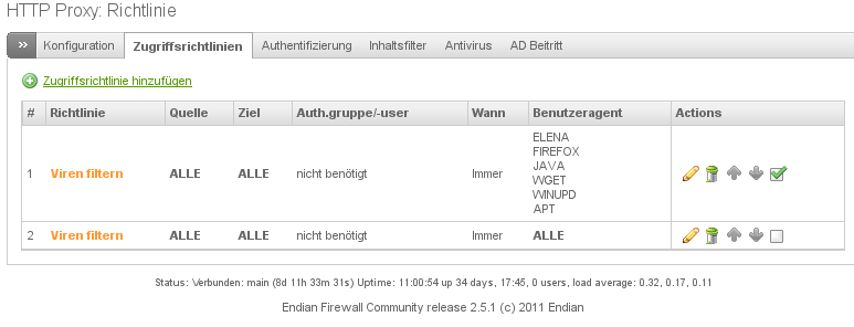 Unter "Inhaltsfilter" habe ich ein Profil "content1" angelegt, in dem ich aber keine Einschränkungen getroffen habe. Und zudem verwende ich das Profil ja auch nicht in der Zugriffsrichtlinie.