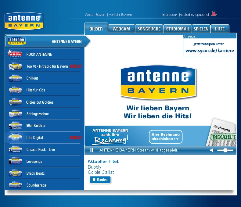 (Nur weil's verwirrend sein könnte: Das "ANTENNE BAYERN Stream wird geladen" erscheint wieder, wenn die Fehlermeldung verschwindet. Bleibt aber immer bei 0% stehen)