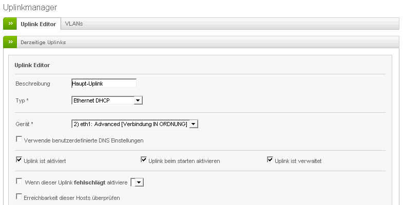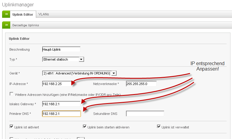 Ich habe bereits versucht, diesen bzw. die IP des Routers als "Gateway" unter der Einrichtung des Uplinks zu nutzen, hat jedoch leider nicht funktioniert...