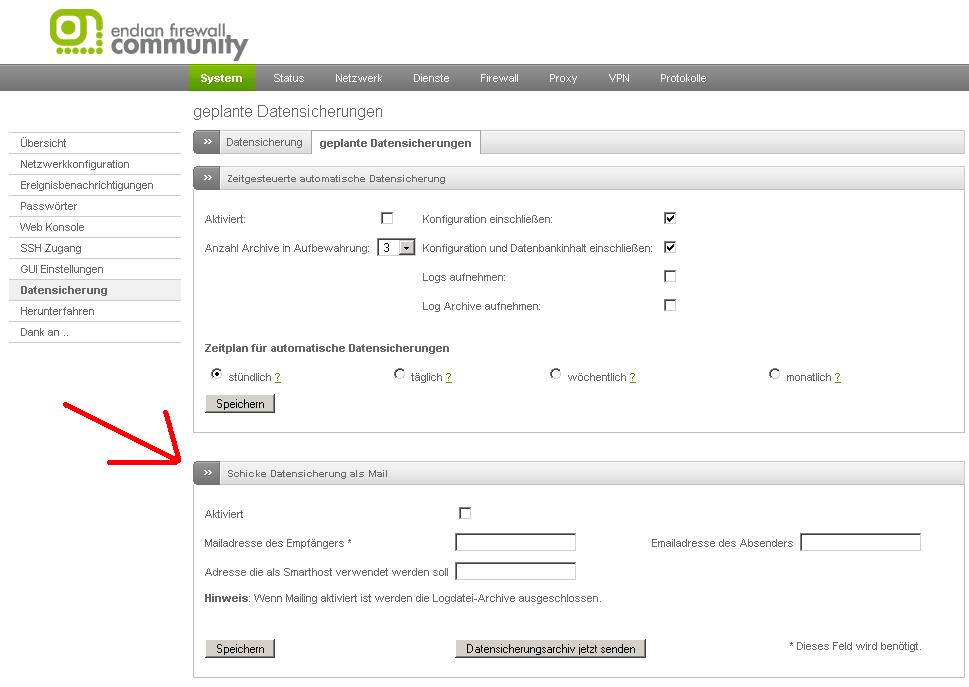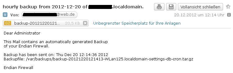 Wie bekomme ich die Endianfirewall dazu mir Emails zu schreiben. Mit geht es hauptsächlich darum mir einmal im Monat automatisch von allen meinen endianinstallation eine Datensicherung der Konfig per Mail zu bekommen. Natürlich währen auch die anderen Emailmeldungen nicht schlecht.