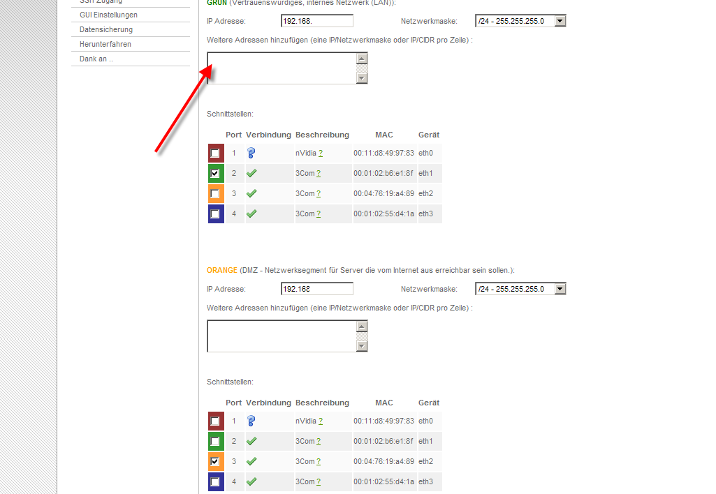 endian wurde mit zwei Netzwerkkarten aufgebaut, bitte korrigiert mich wenn ich was falsch sage: