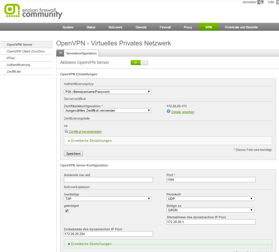Laut Dokumentation auf der Endian Seite soll das möglich sein, finde aber den Eintrag nicht?