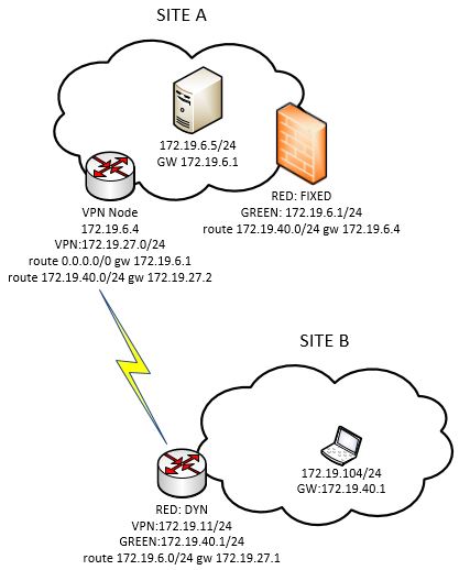 In Site A habe ich eine aktuelle Endian 3.2.5 aufgesetzt, die Endian ist das Default GW für das LAN. Im LAN stehen ein Server und ein OpenVPN-Server.