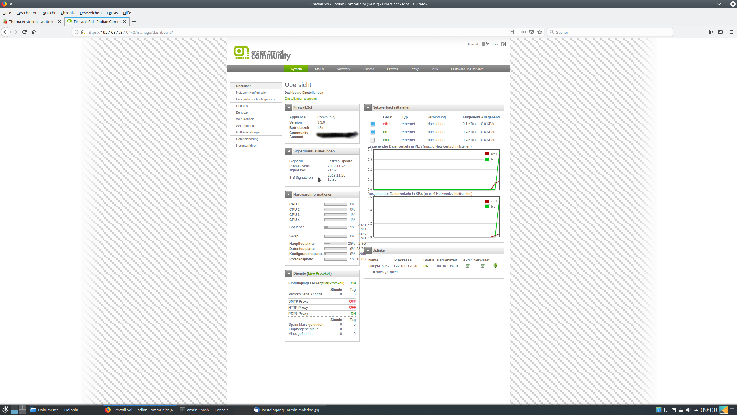 Dies wird auch auf der Status Seite angezeigt.