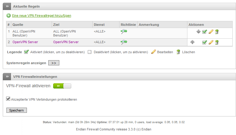 Aber egal wie ich es drehe und wende, habe ich bei den VPN Einstellungen wenn die aktiviert sind in der Endian keine Funktion bei der VPN Firewall.