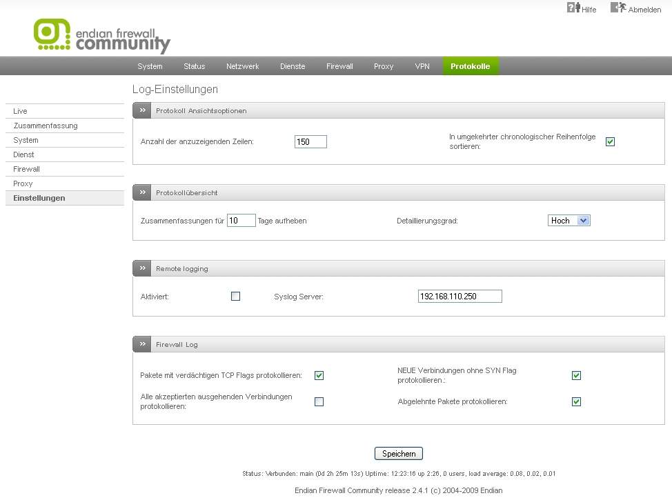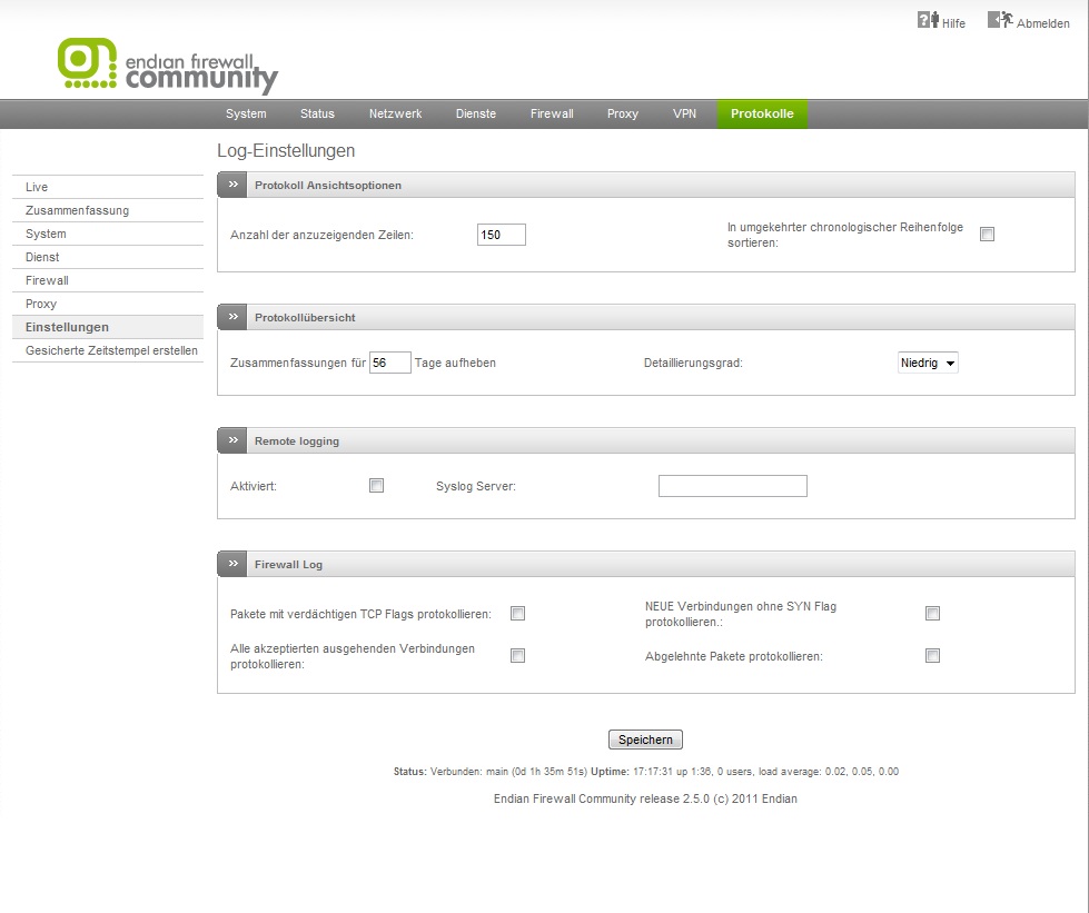 ok ich bin gerade 3 tage über Endian drüber und bin so zur sagen noch neu auf dem Gebiet, wo finde ich diese Log Files von der Firewall ???!!!