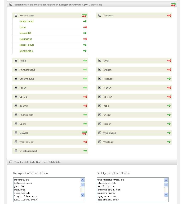 dann unter "Inhaltsfilter" mache ich ein neues Profil und trage unter "blacklists"