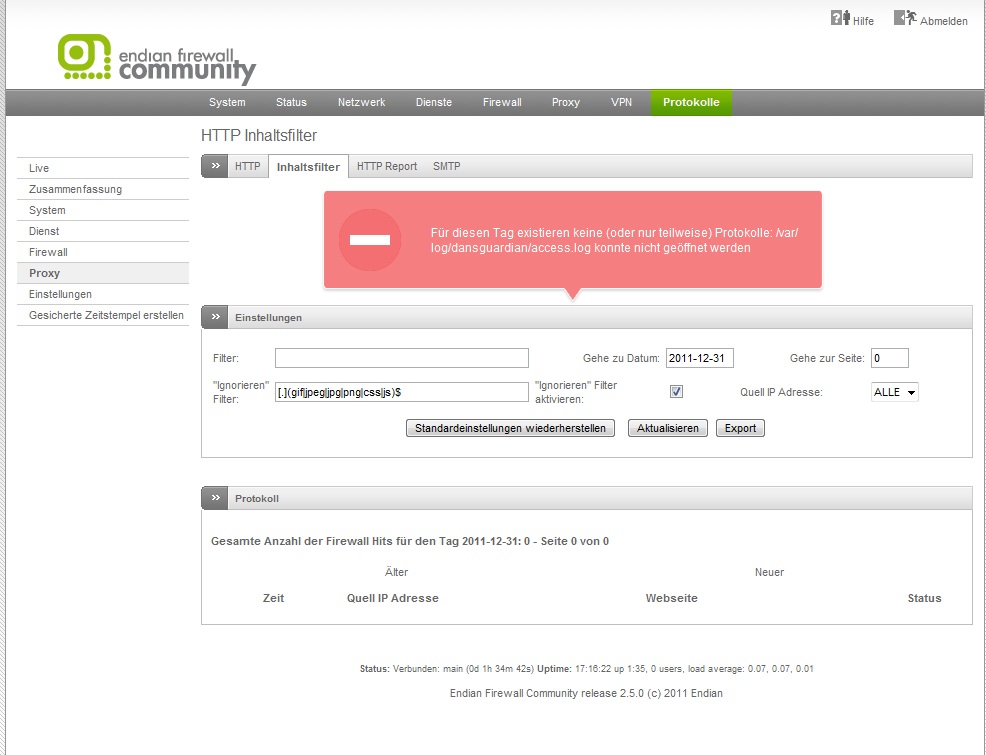 ok ich bin gerade 3 tage über Endian drüber und bin so zur sagen noch neu auf dem Gebiet, wo finde ich diese Log Files von der Firewall ???!!!