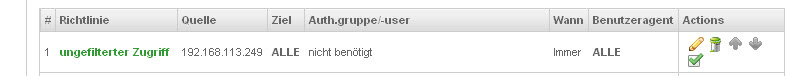 1 Regel : IP´s eingegeben und Ath.gruppe/-user – nicht benötigt eingestellt