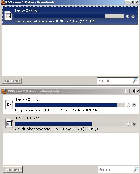 Zwei downloads ca. 36 MB/s ( entspricht ungefähr einer 300Leitung )