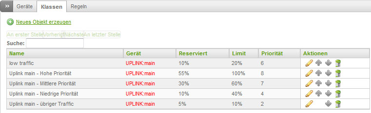 Egal, an welcher Stelle die Klasse sich befindet oder Priorität hat, ändert sich nur die Uploadgeschwindigkeit, nicht aber der Download.