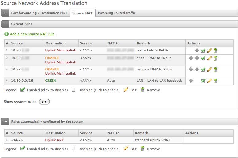 Ja und dann gibt es noch die Firewall-Einstellungen für "Source NAT" (siehe Dateianhang 3). Die letzte Rule 4 mit "LAN to LAN loopback" bin ich mir nicht mehr sicher, ob ich diese in Version EFW 2.2 selbst im Zusammenhang mit einer IPSec Site-to-Site-Verbindung eingefügt hatte. In der Default-Einstellung einer EFW 2.5.1 Neuinstallation ist diese Rule zumindest nicht enthalten.