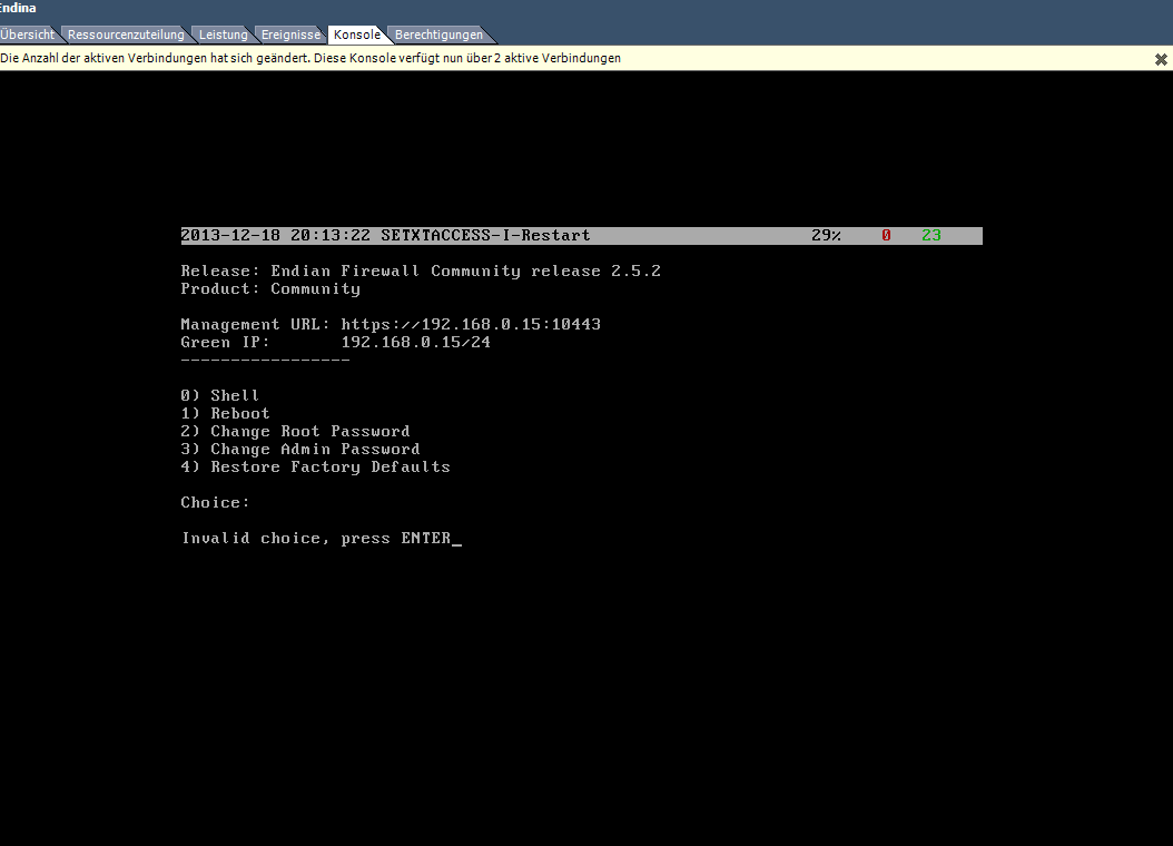 Nun habe ich das probeleme das endina das Netwerk nicht bereit stellt so das ich werder mit V-Syteme noch nomal pc auf web pannel zu greiffen kann! was kann es ligen.