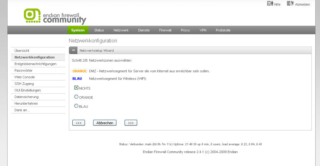Sowas ähnliches hab ich mal mit einem Freund bei einem Schulprojekt gemacht, da sollte der DHCP der grünen Zone auf eine Schnittstelle begrenzt werden, was noch wesentlich einfacher war. War selbst Neuling und hab ne ganze Weile gebraucht bis ichs hinbekommen hab.Ich kann´s nicht wirklich empfehlen, wor allem keinem Neuling. Folge der Änderungen an Konfigurationsdateien und das einbauen von eigenen Scripten ist, dass das alles nach einer Änderung in der grafischen Konfiguration angepasst werden muss und somit immer aufwendiger wird.